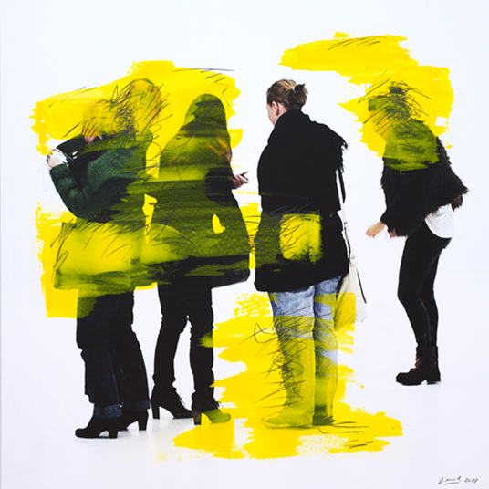 Sehr geehrtes Publikum, liebe Kunstinteressierte Heute stellen zwei Künstler im Badischen Kunstforum aus, deren Werke bereits in diesen Jungendstilräumen zu sehen waren. Werner Ewers, der seine künstlerische Ausbildung in der L‘ Ecole municipale des arts décoratifs in Straßburg begonnen und an der Staatlichen Akademie der bildenden Künstle in Stuttgart beendet hat, zeigte hier 2015 Werke mit Massimo Danielis. Und Hans Benesch, der mit verschiedenen Werkmaterialien arbeitet, brauche ich wohl nur ganz wenigen Besucherinnen vorzustellen, da er sozusagen im eigenen Zuhause, sei es seiner Galerie, sei es dem Badischen Kunstforum viele Male ausgestellt hat. Beide Künstler, die im und nach dem zweiten Weltkrieg geboren wurden, weisen eine langjährige künstlerische Laufbahn auf. Werner Ewers richtete 1963 ein Malatelier ein und wandte sich 1980 Holzskulpturen zu. Drei Jahre später entstand die erste Skulptur mit Pappelholz und Schiefer. Der sechs Jahre später Geborene Hans Benesch begann seine Ausbildung zum Kunstpädagogen in Esslingen. Erst Kunstlehrer an verschiedenen Schulen, wurde er von 1975-79 Lehrbeauftragter an einer Freiburger Fachhoch-schule. Parallel dazu war er bereits ab 1970 als freier Künstler mit eigenem Atelier in den Bereichen Fotografie, Video, Malerei und Materialcollage tätig. Zu dieser Vielfalt an Werkmaterial kam ab 1979 die Auseinandersetzung mit der Entwicklung der Luxographie, die er uns heute und bis 25. März im Endresultat `Übermalungen´ repräsentiert. Das lateinische lux, lucis heißt übersetzt Licht, graphis ist der Zeichenstift. Luxographie ist also übersetzt ein mit dem Zeichenstift malen. Luxographie - diesen Namen hat Hans Benesch seiner eigenständigen, von ihm 1979 selbst entwickelten künstlerischen Ausdrucksweise, einer Verbindung von Fotografie und Malerei, gegeben. Der Pinsel wird dabei durch einen Lichtstab ersetzt. In einem Raum mit bestimmter Lichtfrequenz wird auf den mit einer licht-empfindlichen Schicht gelegten Bildgrund, sei es Holz oder Papier in „ungebremster Spontaneität“ (H.B.) gemalt. Das Verfahren insgesamt basiert auf der Nutzung fototechnischer Möglichkeiten und erlaubt dem Künstler ein spontanes, aber auch präzises Umsetzen seiner Vorstellungen. So entstehen Fotografien, die von Hans Benesch mit Hilfe dieser Technik übermalt und/oder teilweise neu interpretiert werden. Sehen Sie heute breit blau übermalte schwarze Linien, deren Spontaneität den Betrachtenden energievoll und einmalig entgegentreten. Darüber malte Hans Benesch in Blautönungen unterschiedlicher Dichte und vollendete so die 1987 begonnenen schwarz auf weiß gehaltenen Arbeiten ein Dezennium später. Das nochmalige Hervornehmen von älteren Werken und diese auch nach Jahren fertigzustellen, ist ein Prozeß, den der Künstler bewußt wählt. Für Besucher und Besucherinnen braucht es insgesamt ein längeres Verweilen und Schauen vor den Werken, wobei da auch ein Erkennen subjektiv empfundener Formen gewünscht ist und tatsächlich auch eintreffen kann. Übermalungen sind von dem österreichischen Doyen unter den Künstlern Arnulf Rainer bekannt. Er hat in den 1960er Jahren begonnen, die Fotografie seines eigenen Gesichts farbig zu übermalen. Eine Aufnahme übermalte er in grober Strichführung in roten und gelben Farben, und betitelte sie mit `Rembrandt II´. Hans Benesch hingegen nimmt Szenen von der Straße, seien es Menschen, seien es Gebäude oder Straßen und Hauswände oder Landschaften, die er mit dem Werkzeug Lichtstab übermalt. In seinen Fotoübermalungen, die Hans Benesch seit 2012 schafft, herrschen bestimmte Farbtöne vor, das ist wie auf der Einladungskarte das Gelb über einer Farbfotografie, die Menschen zeigt, mit vornehmlich gedeckten Farben. Er bildet hier auch eine typische Verhaltensweise von heute ab: Menschen, die vereinzelt oder alleine mit ihrem Handy in der Hand dastehen oder zu zweit auf dem Boden liegen. Mit Verve führte der Künstler den Lichtstab über die Figuren. Oder das Rot, bei Arbeiten, deren Fotografien aus dem Internet gewählt und vielfach, meist in dunklen Rottönen oder schwarz bis flammengelb übermalt sind, sodaß eine kriegerische Handlung, ein schmerzvoller oder leerer Gesichtsausdruck beinahe zur Gänze dahinter verschwindet. Die Werkkunst Galerie Berlin konnte bereits 2016 `Übermalungen´ in einer Einzelausstellung zeigen. Im Vorjahr zeigte Hans Benesch Werke an der ART-Salzburg und im Intersalon 2017 in der Galerie Marianska in Budweis, Tschechien. Seit 1993 widmet sich der Künstler der Bearbeitung und Übermalung von Büchern. Im Zentrum stehen dabei Dialoge mit der Geschichte, der Wissenschaft oder der Kunst. In letzterer steht er wiederum, außer mit seinem Zeichen- und Malmittel Lichtstab in der Tradition des einstigen `enfant terrible´ Arnulf Rainer. Hans Benesch hat zahlreiche Arbeiten in verschiedenen Museum. Gehen wir von der Bildhauerei als derjenigen dreidimensionalen Kunst aus, die weiche Materialien wie Holz, Gips, Terrakotta und Wachs, die später im Gussverfahren auch zu Bronze werden, verarbeitet, so arbeiten Skulpteure mit harten Materialien wie Beton, Schiefer oder Marmor oder sie schnitzen Holz. Werner Ewers begann vor 35 Jahren mit seiner ersten Pappelholz und Schiefer Skulptur. Gerne vereint er diese meist gegensätzliche Materialien wie Pappelholz und Schiefer oder Schieferblöcke, die in Holz gebettet sind. Vor vielen Jahren bereits hat Werner Ewers begonnen, seine Arbeiten in „Körper-Landschaften, Steine-Landschaften und „konstruierte Landschaften einzuteilen“. Sowohl die Pappelhölzer der „Körper-Landschaften“ als auch die Schieferblöcke im Pappelholz der „Steine-Landschaften“ können entfernt und wieder eingesetzt werden. Nach Ebringen hat er neun „konstruierte Landschaften“ mitgebracht. Sie sind aus Schiefer, der mal in Korrespondenz mit Filz, dann wieder mit Holz oder mit Plexiglas interagiert. Die Werke dürfen und sollen berührt werden. So si