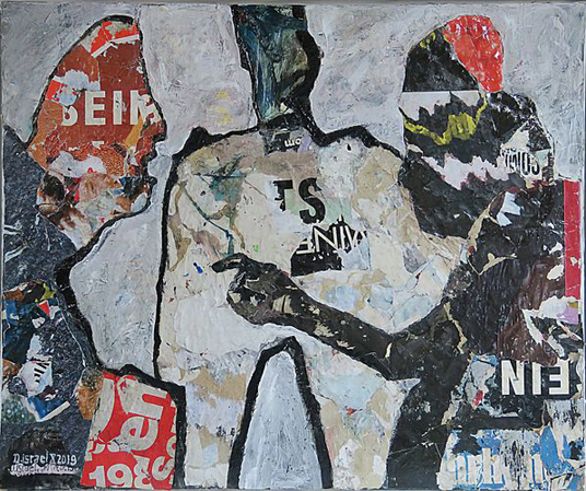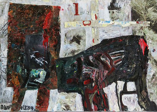Dietmar Israels Bilder sind weder vorausgedacht, noch geplant. Sie entstehen aus einem inneren Bedürfnis heraus malen zu müssen. Farben werden spontan und intuitiv auf den Malgrund aufgebracht, mischen sich unter seinen Händen zu einer ungegenständlichen Formen- und Farbenwelt. Während des weiteren Schaffensprozesses entstehen Verdichtungen, die sich dann zu aussagekräftigen, symbolhaften Bildmotiven entwickeln können. Starke Hell-Dunkelkontraste, dramatisch gesteigert, gefühlsbetont und zielgerichtet, drücken menschliche Befindlichkeiten aus. Dietmar Israels Bilder sind ehrlich. Sie erzeugen eine In-timität, die nicht verborgen bleiben kann, weil sie menschliche Existenzen berührt.